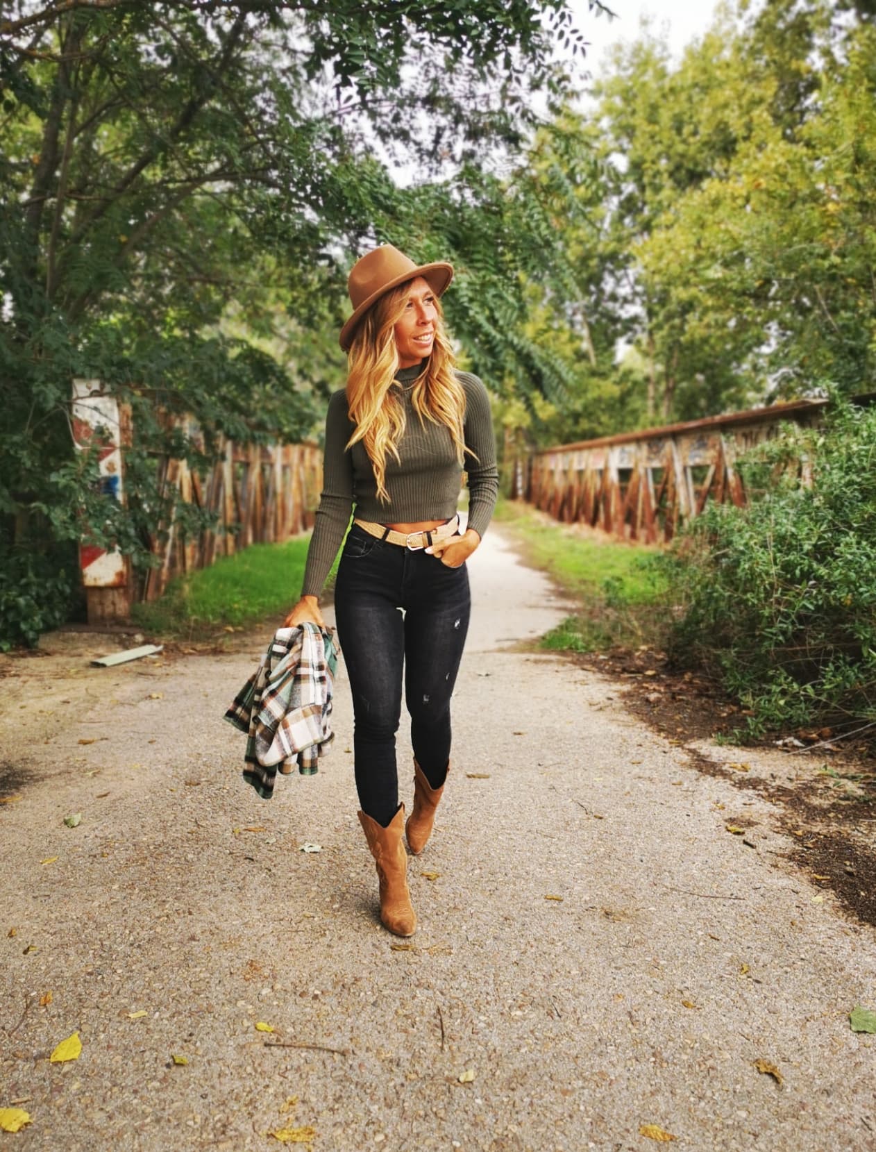 - Uno de estos looks por excelencia es con unos jeans pitillo, ya que la bota cowboy de caña alta o el botín son los aliados perfectos para este look. Además, al llevar los pantalones metidos por dentro y la bota ceñida, lograremos estilizar nuestra pierna para que parezca más larga. Además, para el frío del invierno es ideal ya que vamos muy calentitas.